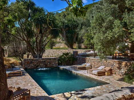 Esta finca tradicional de Ibiza combina un diseño moderno y acogedor con la privacidad, todo ello perfectamente situado en el corazón de la isla.