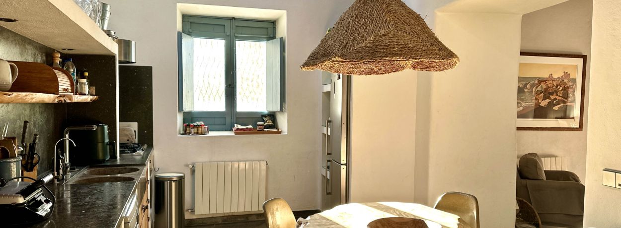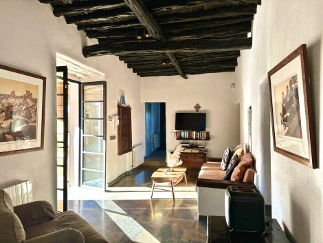 The main house features a spacious living room, a large kitchen ideal for family meals or entertaining, three comfortable bedrooms, and two bathrooms, including a generous central bathroom with a bathtub. Every detail of the renovation respects the property’s original character while incorporating high-quality finishes throughout.