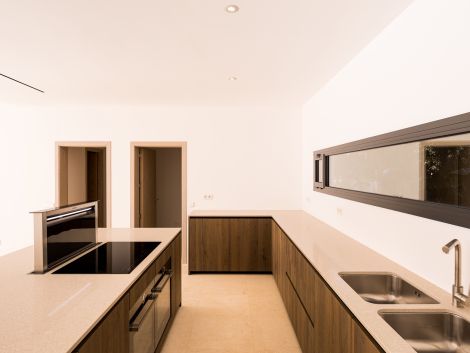 Can Masia fue diseñada por el amor que su propietario tiene por el diseño moderno y demuestra cómo la sostenibilidad puede crear belleza. Para esta casa contemporánea de alto standing, utilizamos tecnología SISMO, un innovador sistema de celosía de acero inoxidable con una espuma porosa en el interior. Este eficiente y modular marco requirió de menos hormigón. Además, produjo paredes naturalmente ventiladas para un entorno de vida eficiente y sostenible. Equilibramos el diseño con piedra ibicenca que conectaba la casa a su entorno natural