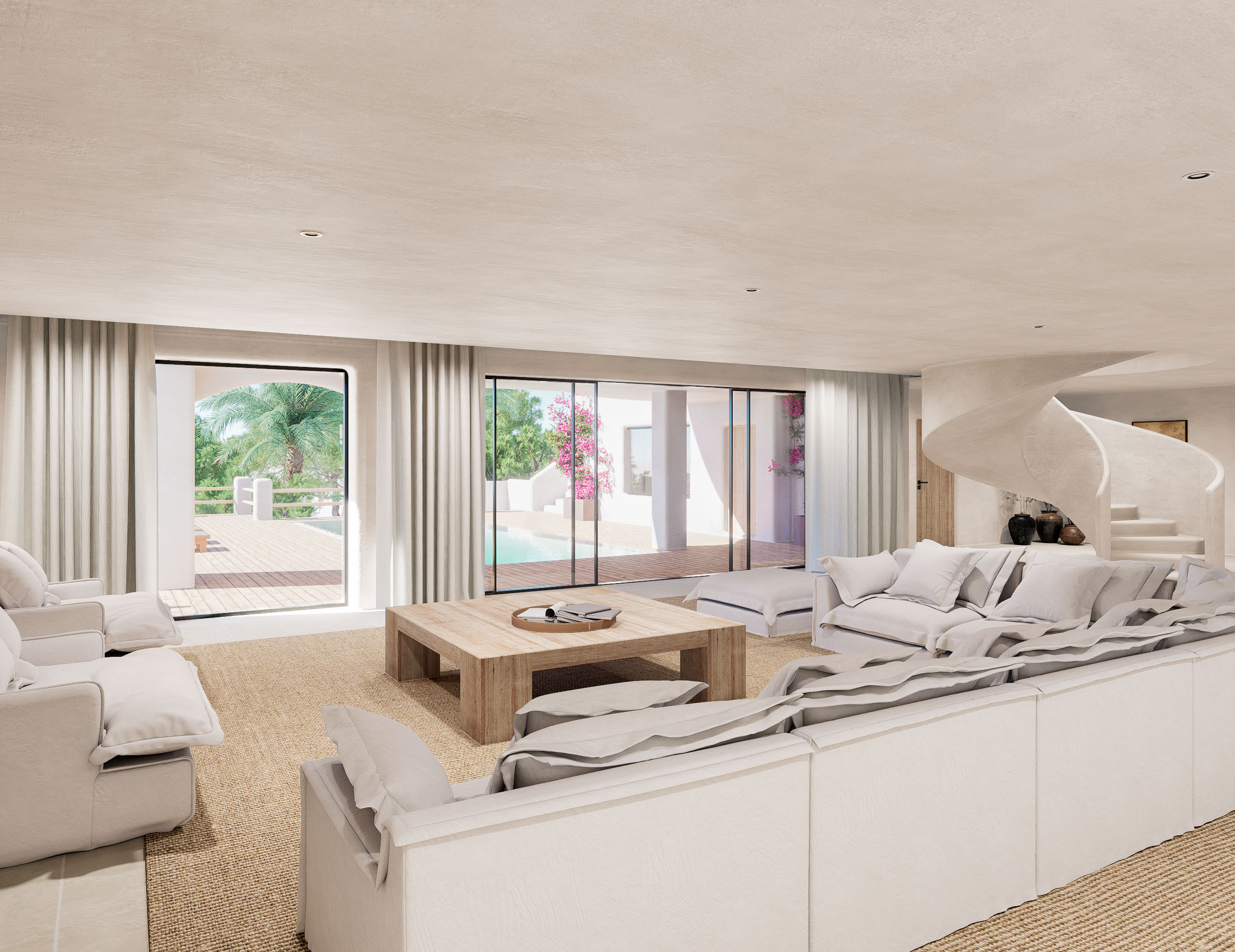 Ca des Mirador – Exceptional Private Villa with Panoramic ViewsLocated in the exclusive gated community of Can Furnet (Jesús – Santa Eulalia del Río), Ca des Mirador sits in an elevated position offering complete privacy with no direct neighbors. The property is just 5 minutes from the charming village of Jesús and only 10 minutes from Ibiza Town, Ibiza Nueva Marina, and Marina Botafoch.This impressive Mediterranean-style villa benefits from 24/7 security and private access, being the last house in the urbanization — completely hidden from view and ensuring total discretion.Key Features: