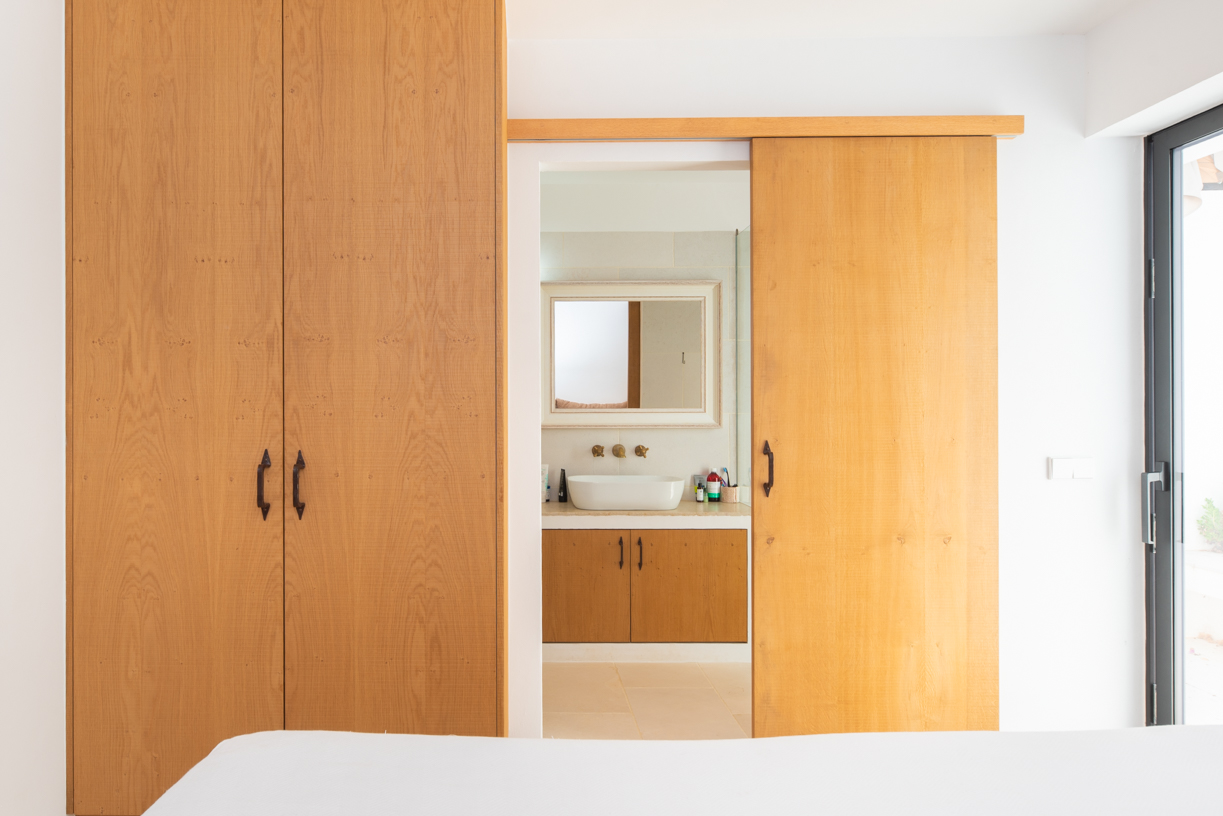 The heart of Villa Alba is the ground floor, where a salon merges into an open plan kitchen with warm oak cabinetry and black granite surfaces. This level has got two large double bedrooms, both with sea views and direct terrace access.