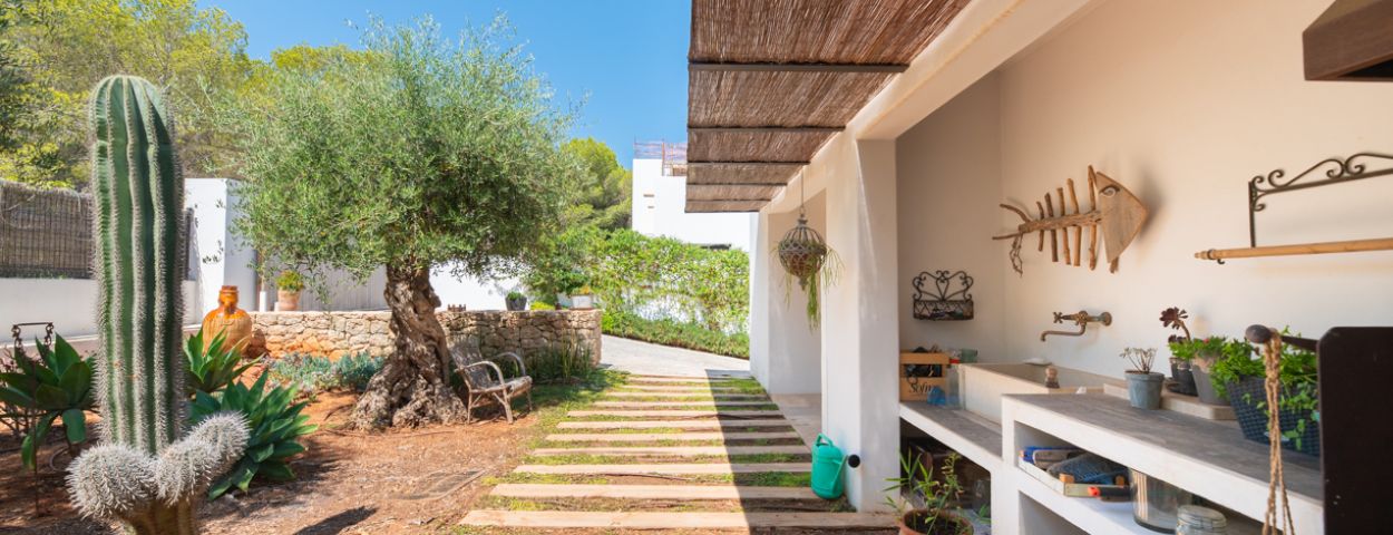 The exterior is a celebration of the Ibiza lifestyle. A mature, landscaped garden surrounds a 12x4m saltwater pool, framed by multiple sun terraces and al fresco dining areas. For those looking to expand, there is a unique opportunity to purchase adjacent urban or forest land.