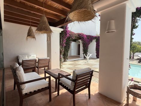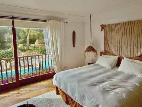 This beautifully designed villa, built in 2015 with high-quality materials, reflects the authentic Ibizan style and was created by the current owner for private use. Located at the end of a quiet cul-de-sac, the property offers privacy and is surrounded by nature on a nearly 16.000 m² fully fenced and flat plot, ideal for families or those seeking tranquility.